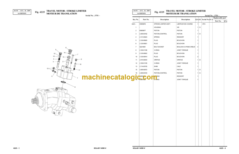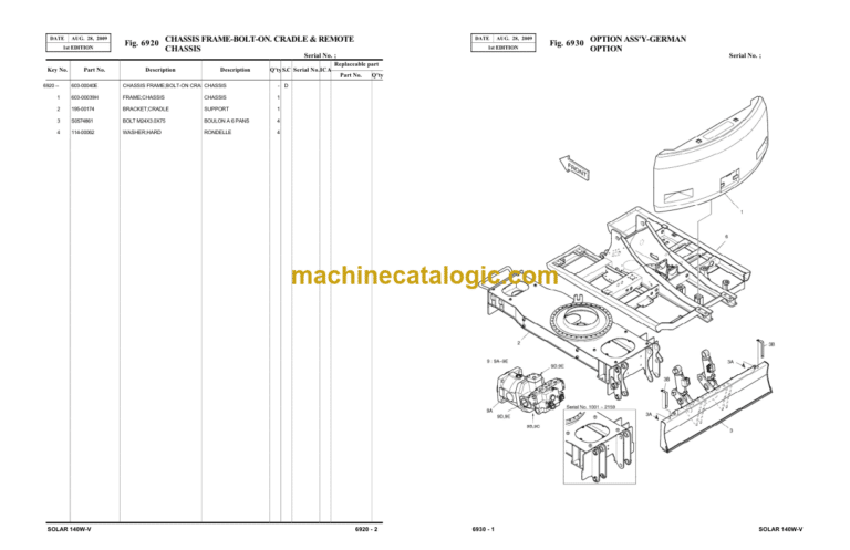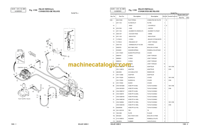 Doosan S140W-V Excavator Parts Manual (Serial Number 1001 and UP)