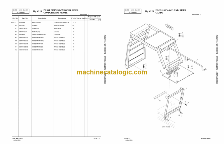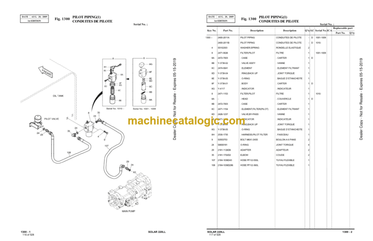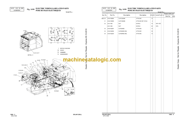 Doosan S220LL Excavator Parts Manual (Serial Number 1001 and UP)