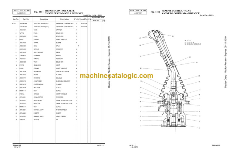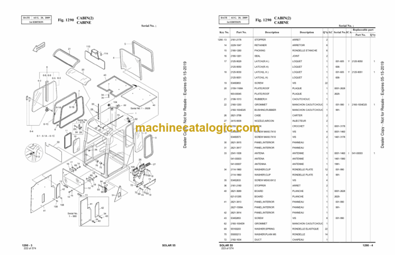 Doosan S55 Mini Excavator Parts Manual (Serial Number 0001 and UP)