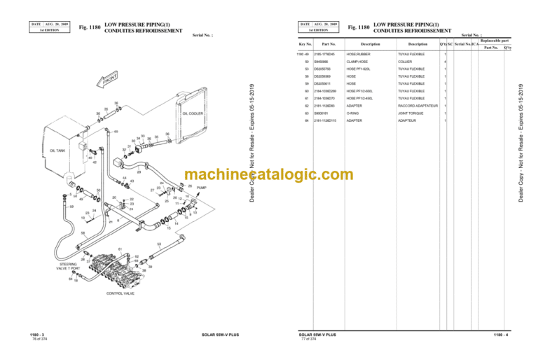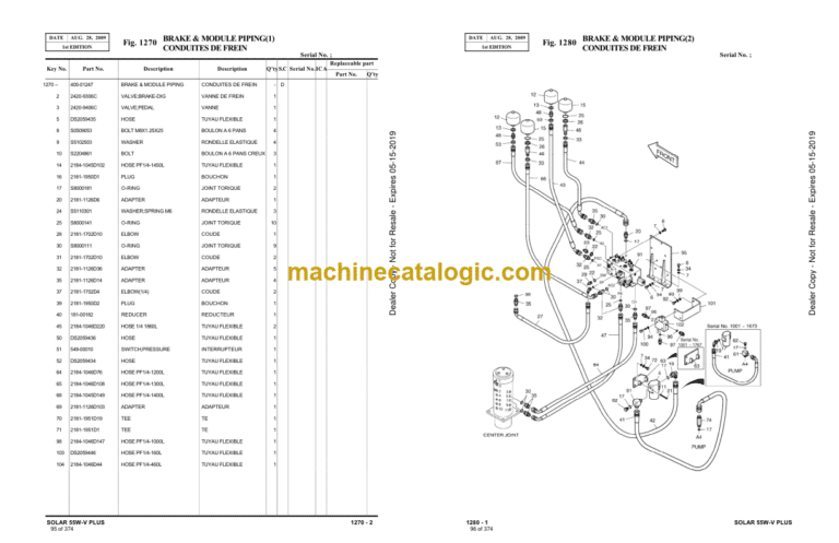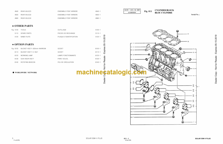 Doosan S55W-V Plus Wheeled Excavator Parts Manual (Serial Number 1001 and UP)