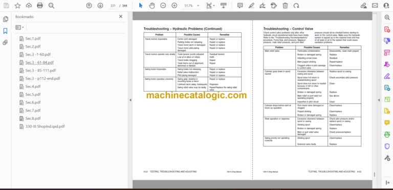 Troubleshooting – Travel Control Valve . . . . . . . . . . . . . . . . . . . . . . . . . . . . . . . . . . . . . . . . . . . . . 8-25