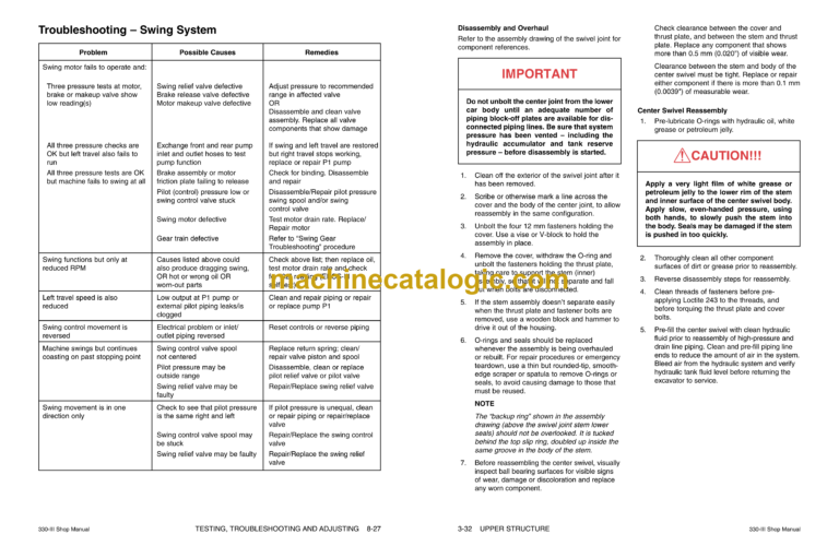 Troubleshooting – Swing System . . . . . . . . . . . . . . . . . . . . . . . . . . . . . . . . . . . . . . . . . . . . . . . . . . 8-27