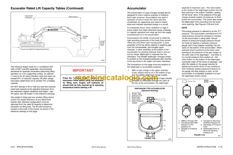 Excavator Rated Lift Capacity Tables . . . . . . . . . . . . . . . . . . . . . . . . . . . . . . . . . . . . . . . . . . . . . . . 2-13
