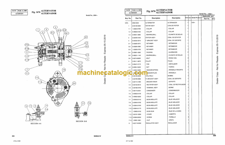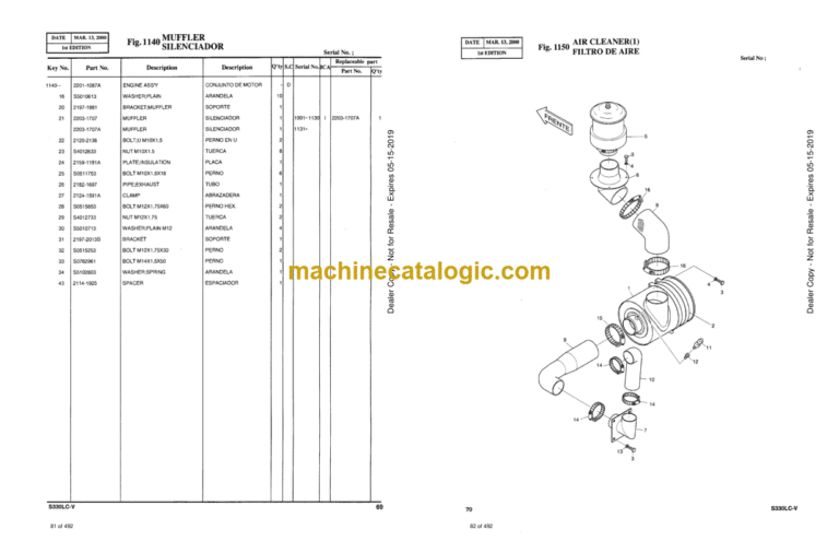 Doosan Solar 330LC-V Excavator Parts Manual (Serial Number 0001 and Up)