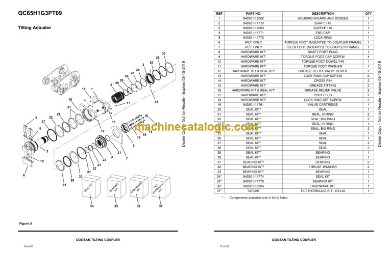 Doosan Tilting Coupler Attachment Parts Manual (Serial Number B3S300101, B47B00101, B3S500101, B3S600101, B3S800101 UP)