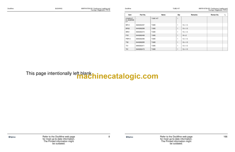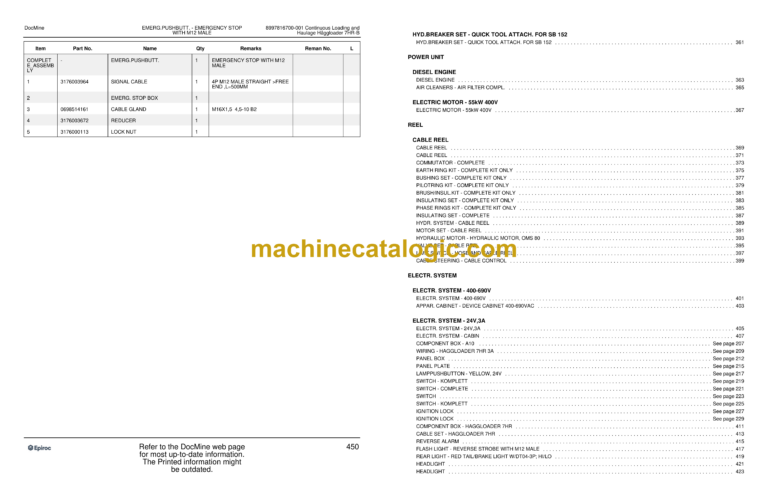 Epiroc 7HR-B Continuous Loading and Haulage Häggloader Parts Catalog