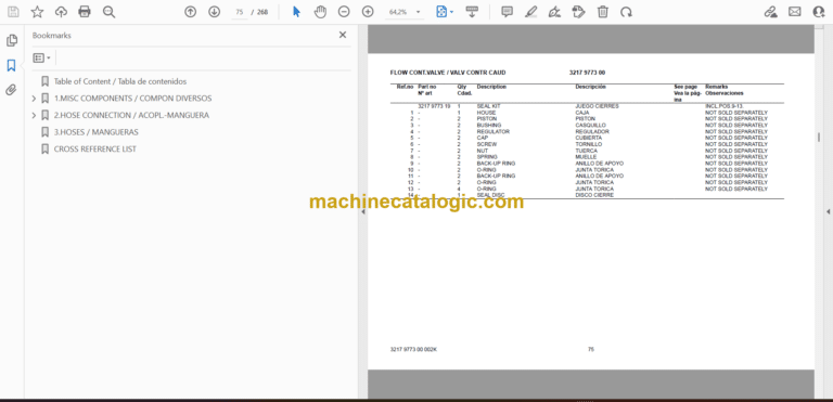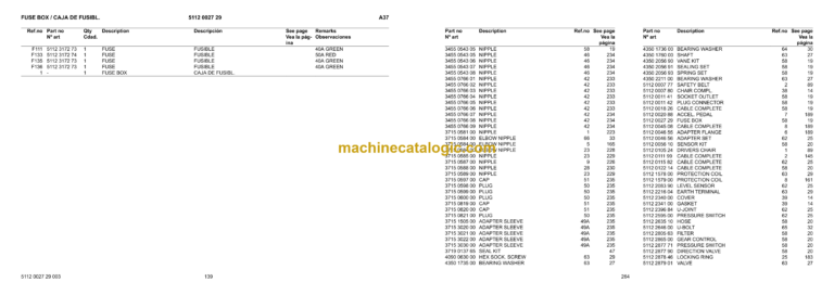 Table of Content / Tabla de contenidos I.MISC COMPONENTS / COMPON DIVERSOS 2.HOSE CONNECTION / ACOPL.-MANGIJERA 3.HOSES / MANGIJERAS CROSS REFERENCE LIST