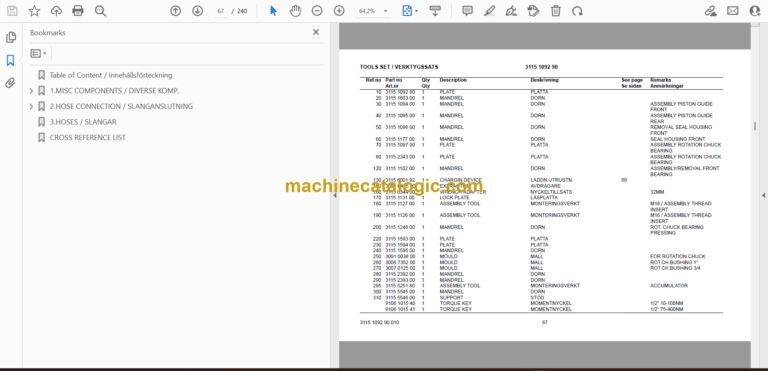 Table of Content / Innehållsförteckning I.MISC COMPONENTS / DIVERSE KOMP. 2.HOSE CONNECTION / SLANGANSLUTNING 3.HOSES / SLANGAR CROSS REFERENCE LIST