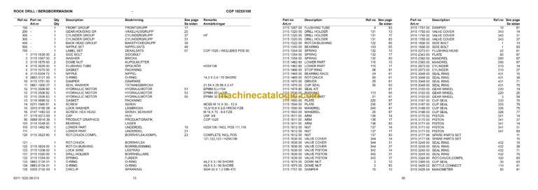 Epiroc COP 1025×108 Version A Hydraulic Rock Drills Parts Catalog