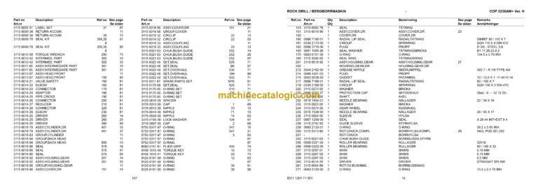Epiroc COP 2238AW+ Version H Hydraulic Rock Drills Parts Catalog