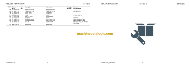 Epiroc COP 2550UX+ Version F Hydraulic Rock Drills Parts Catalog