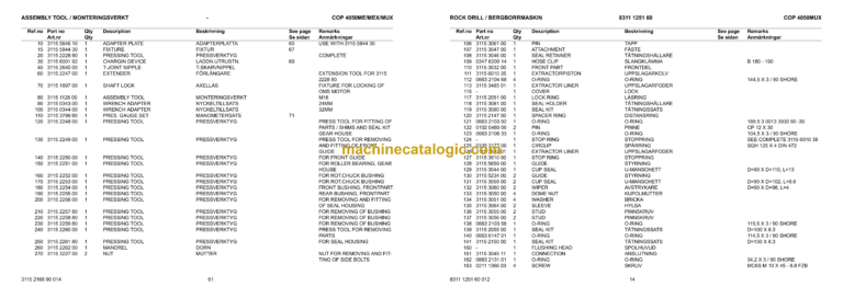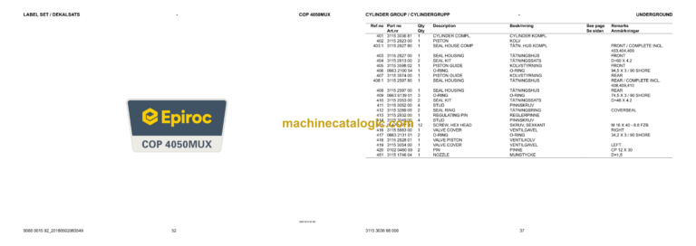 Epiroc COP 4050MUX Version P Hydraulic Rock Drills Parts Catalog