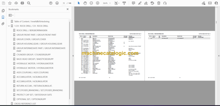Epiroc COP SC16, SC19-HF Version H Hydraulic Rock Drills Index: