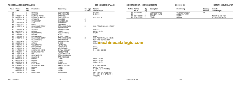 Epiroc COP SC16, SC19-HF Version H Hydraulic Rock Drills Parts Catalog