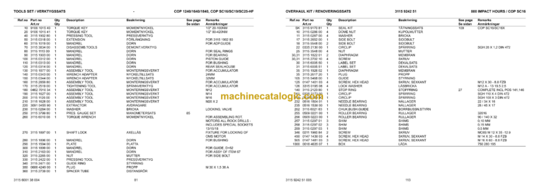 Epiroc COP SC16 Version H Hydraulic Rock Drills Parts Catalog