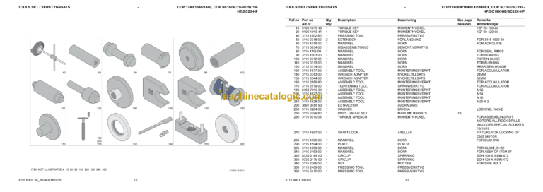 Epiroc COP SC16X, SC19X-HF Version H Hydraulic Rock Drills Parts Catalog