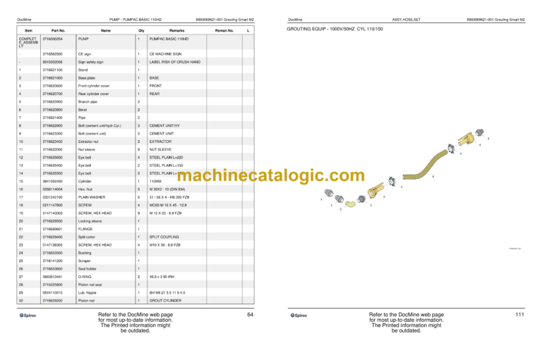 EQUIPMENT,GROUTING GROUTING EQUIP – 1000V/50HZ CYL 110/150 HOSE CONNECTION HOSE CONNECTION