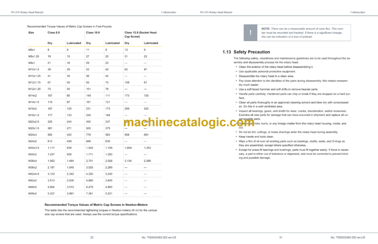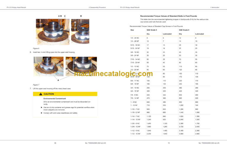 Model: PV-275E, PV-275D, PV-271E, PV-271D PV-270 Rotary Head Rebuild