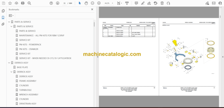 PARTS & SERVICE DERRICK ASSY PIPE HANDLING CRAWLER POWER PACK COOLING UNIT HYDR SYSTEM ELECTR. SYSTEM FIRE SUPPR.SYST SIGNS ACCESSORIES HOSE CONNECTION