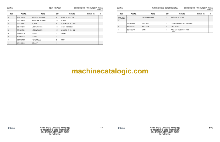 Note: Include your serial number and machine model in the ‘Order Notes’ when placing your order, and we will send you the appropriate parts catalog.