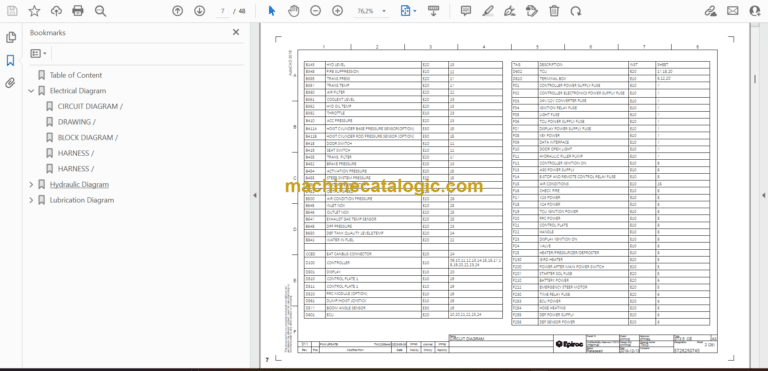 Table of Content Electrical Diagram Hydraulic Diagram Lubrication Diagram