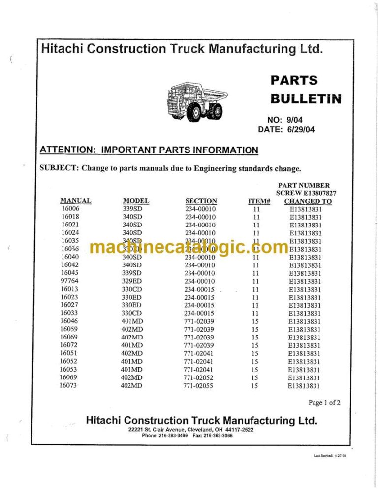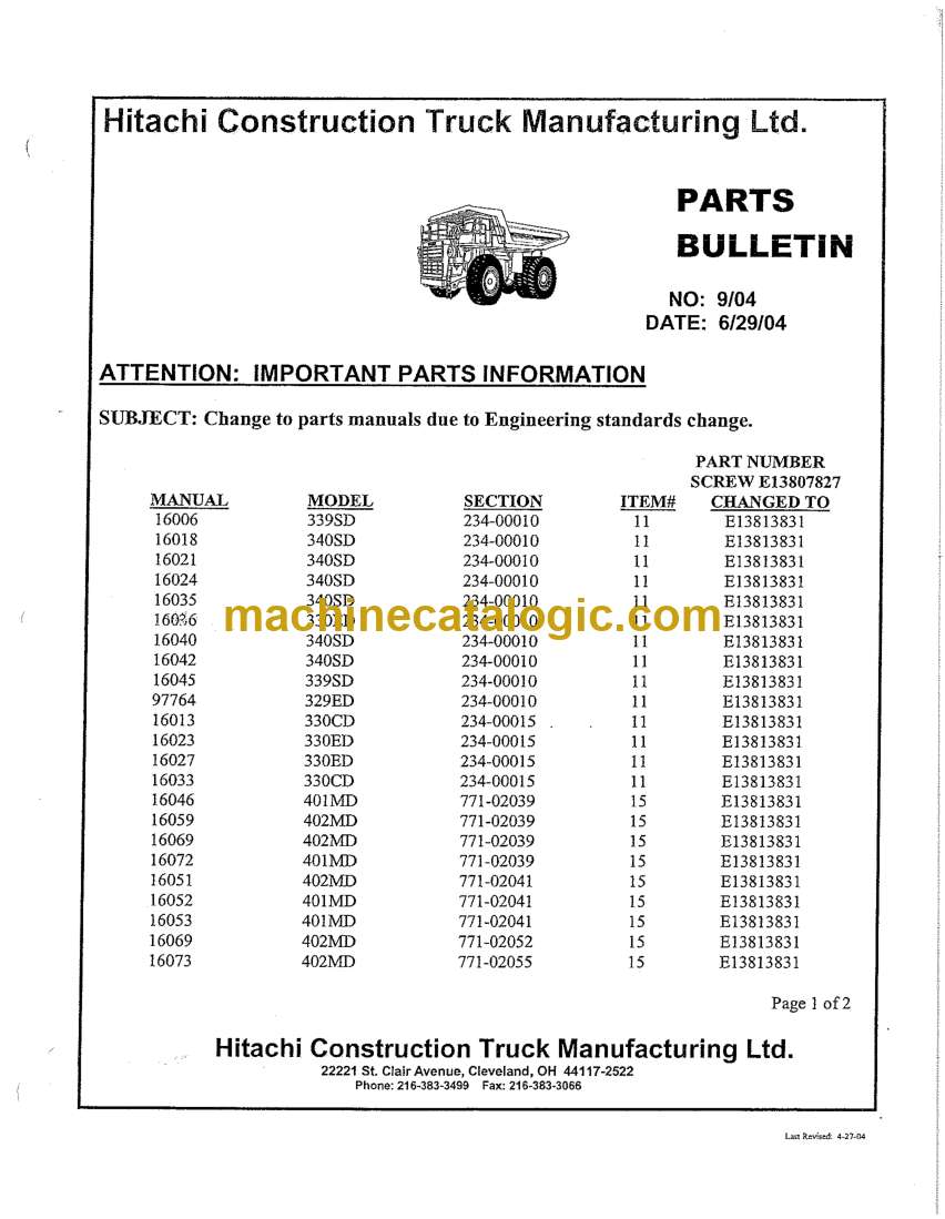 Euclid R150-330CD Dump Truck Parts Catalog (6314316013) (SN 75401,75410,75423,75438,75446)