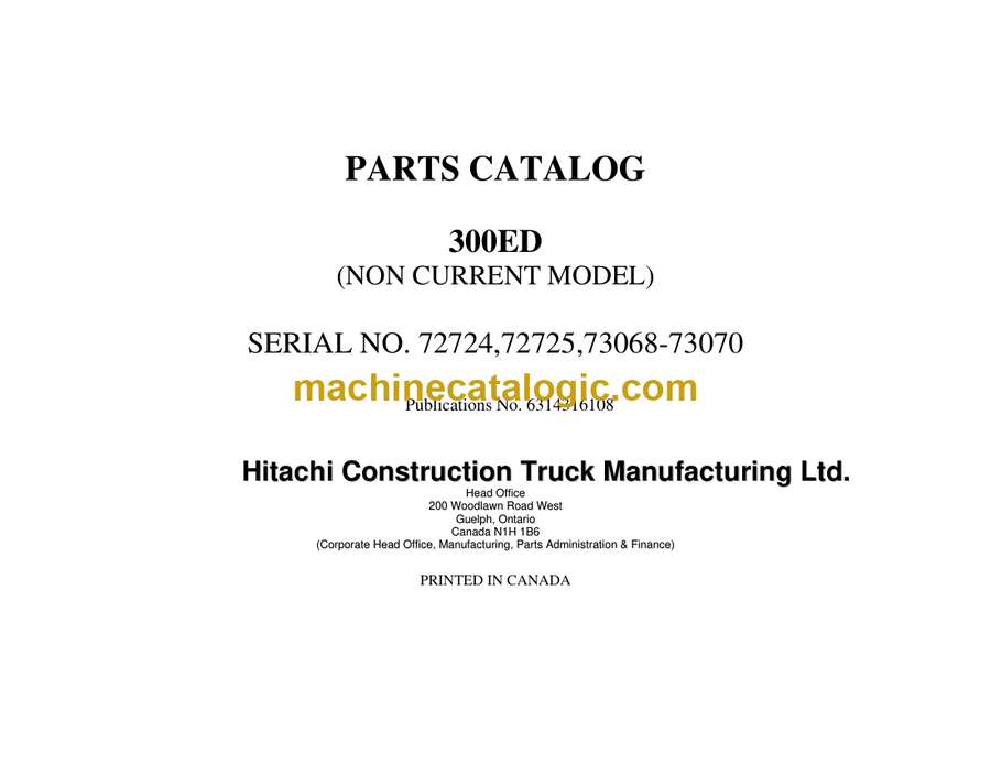 Euclid R170-300ED Dump Truck Parts Catalog (6314316108) (SN 72724, 72725, 73068-73070)