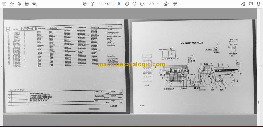 Euclid R190-340SD Dump Truck Parts Catalog (6314316035) (SN 76003)
