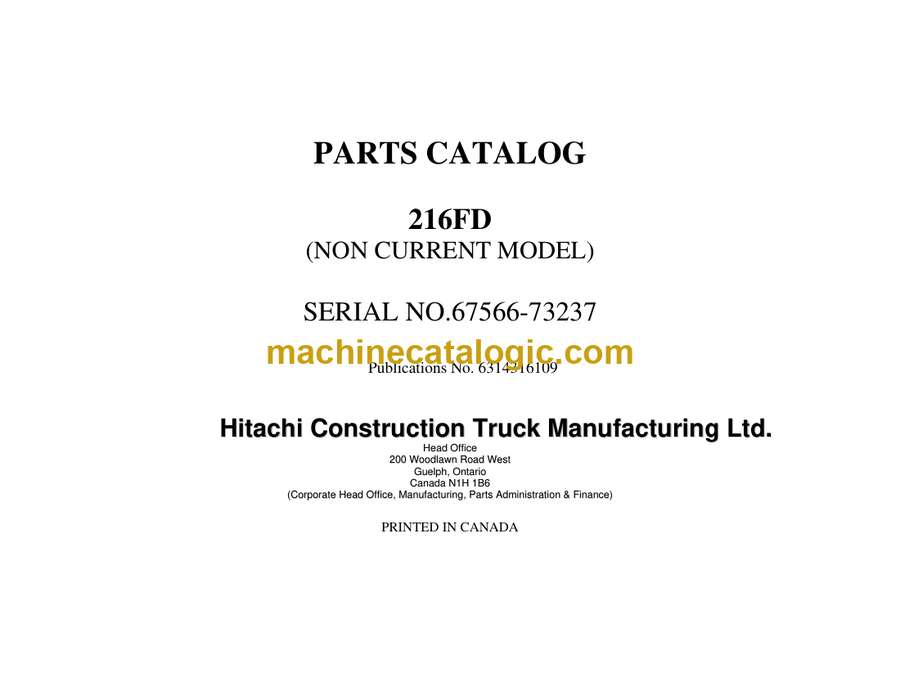 Euclid R25-216FD Dump Truck Parts Catalog (6314316109)