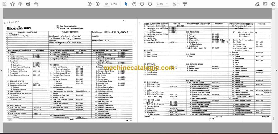 Euclid R35-201TD Dump Truck Parts Catalog Sheets