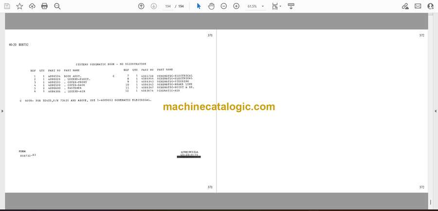 Euclid R35-324TD Dump Truck Parts Catalog (6314316101)