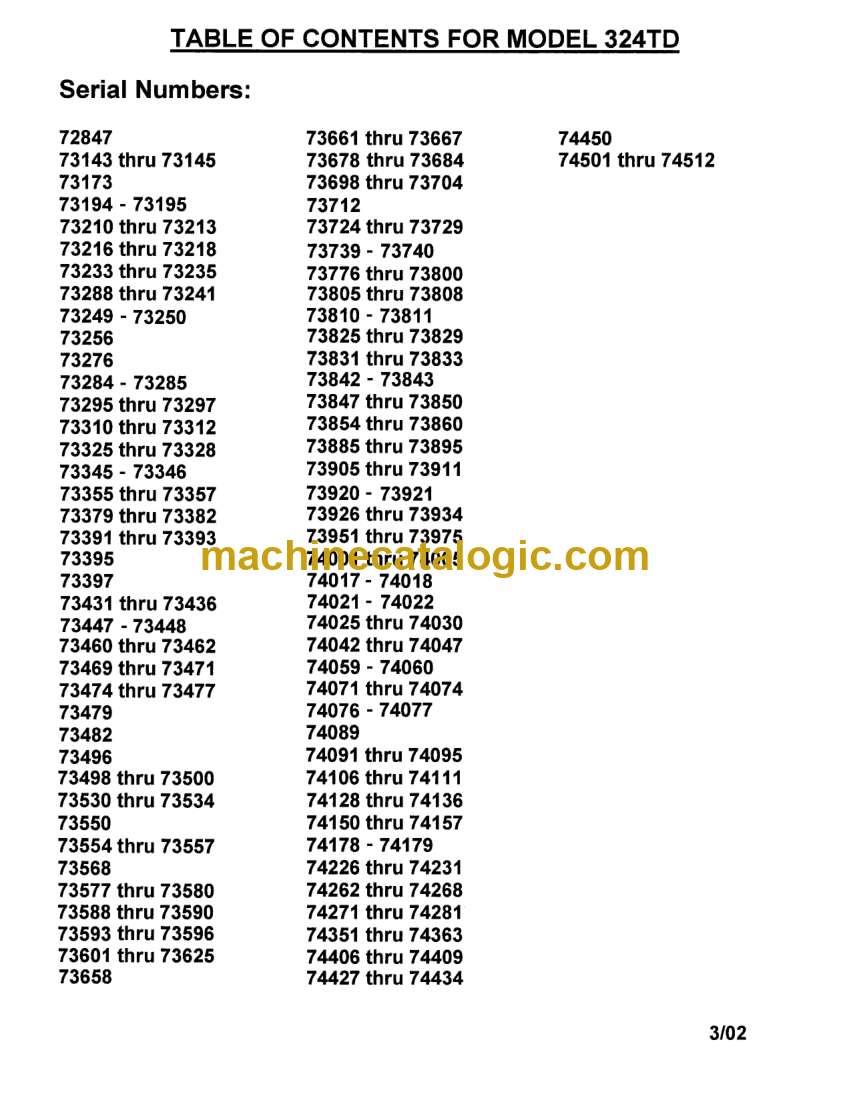 Type of Document: Parts Catalog