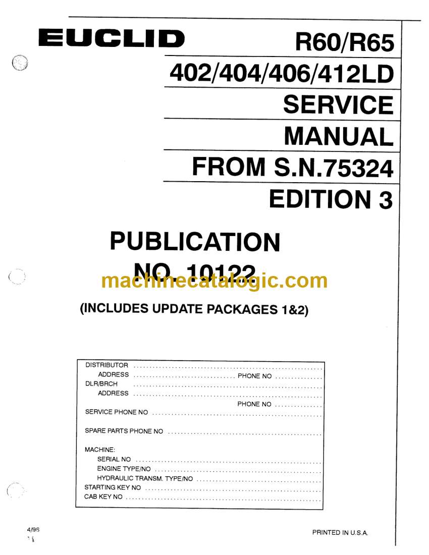 Euclid R60, R65 402, 404, 406, 412LD Dump Truck Service Manual (Pub 10122)