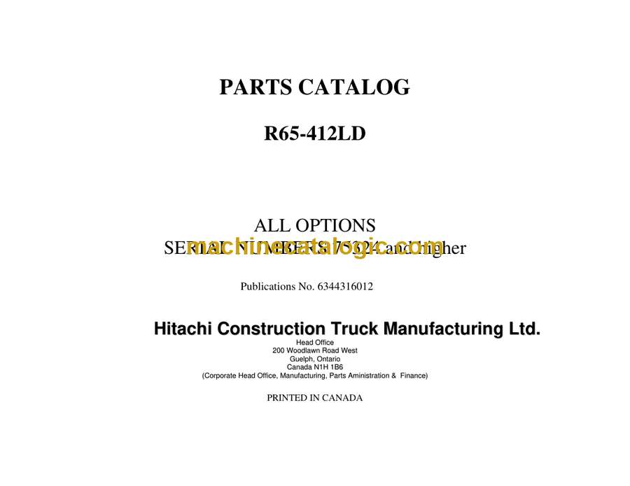 Euclid R65-412LD Dump Truck Parts Catalog (6344316012) (SN 75324 & HIGHER)