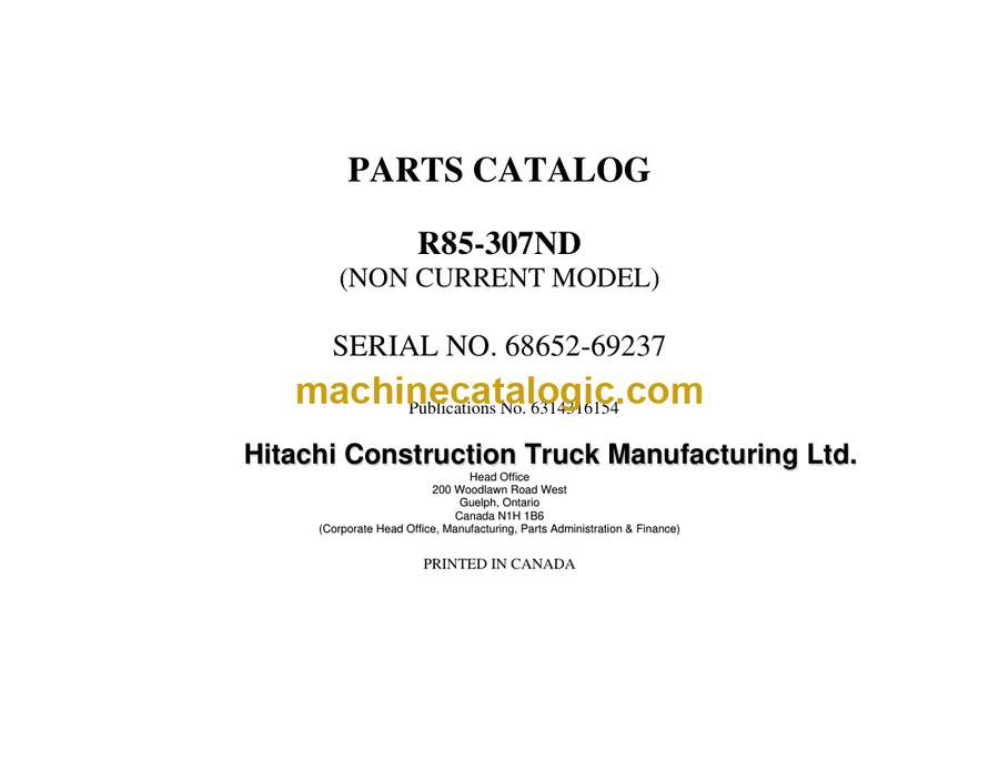 Euclid R85-307ND Dump Truck Parts Catalog (6314316154) (SN 68652-69237)