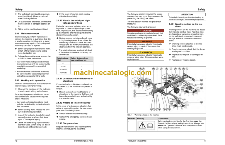 Fendt 12545 PRO Former Rotary Rake Operator’s Manual (FEL1691790401)
