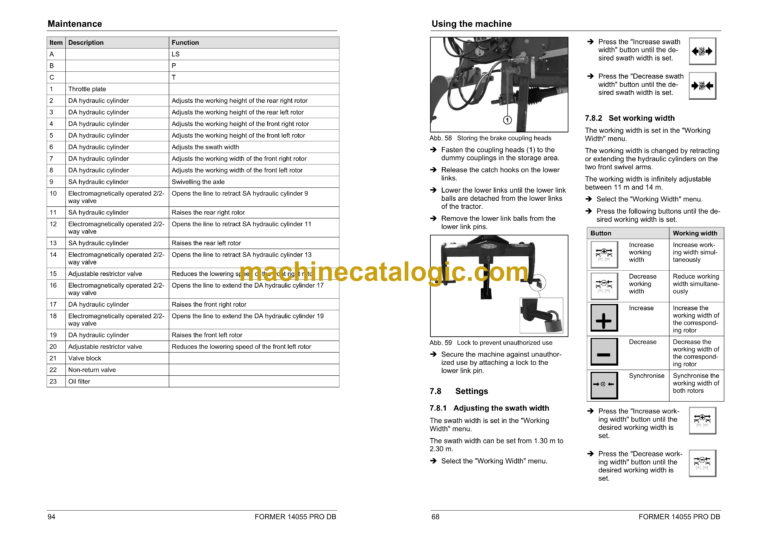 “Working Width” menu