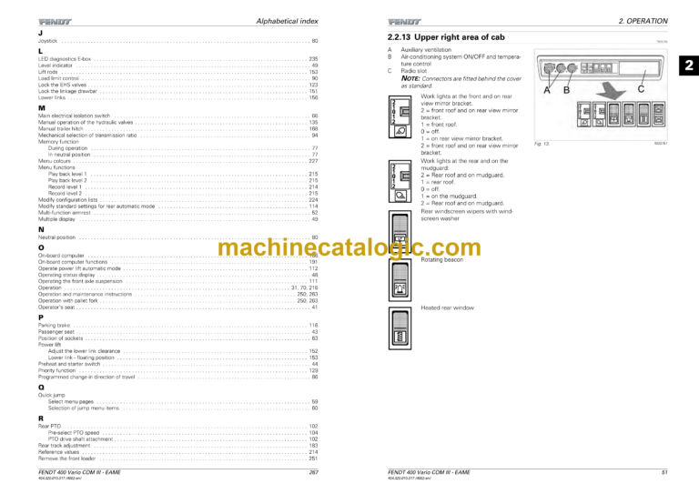 Fendt 411, 412, 413, 414, 415 Vario Tractor Index: