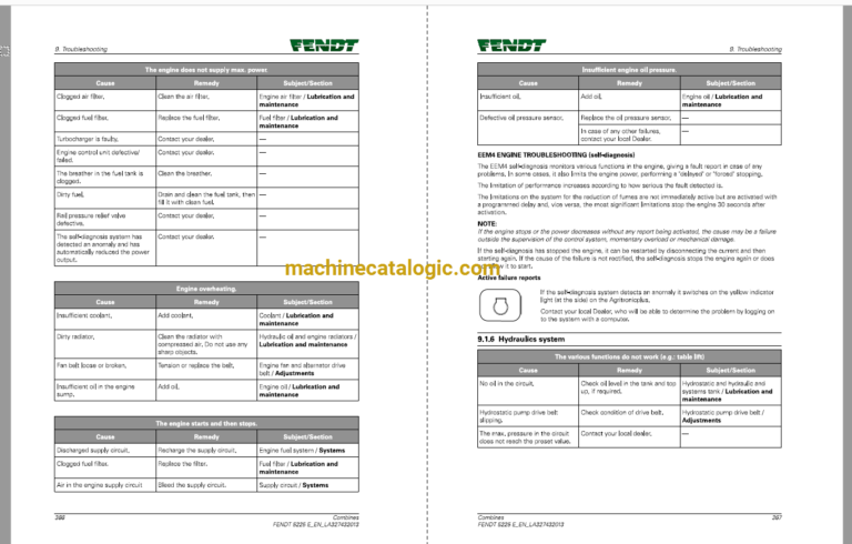 Fendt 5225 E Combines Harvesting Operator’s Manual (551620077)