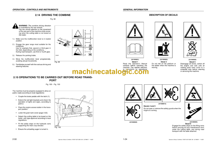 Fendt 5270C, 5270C AL, 6300C, 6300C AL Combines with PowerFlow TABLE Harvesting Operator’s Manual