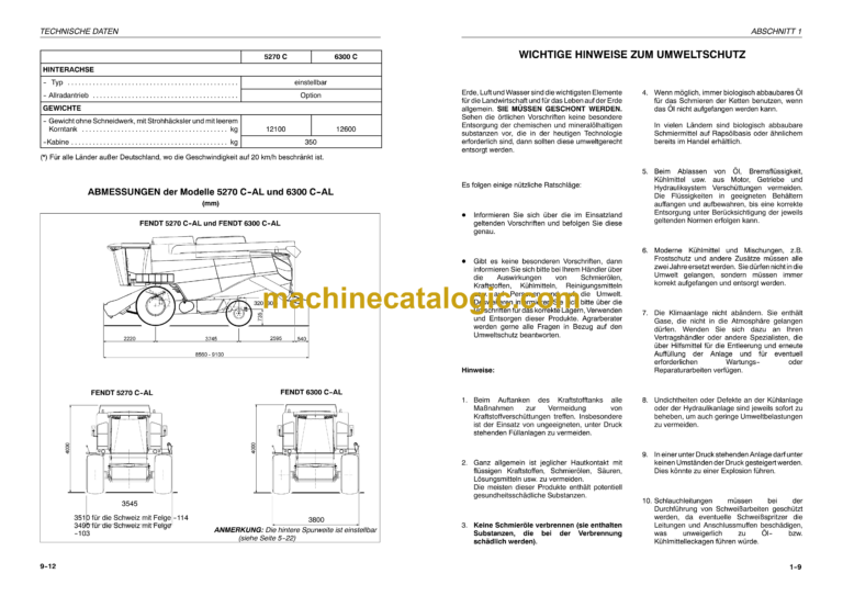 Fendt 5270C, 5270C-AL, 6300C, 6300C-AL Mahdrescher mit PowerFlow-Schneidwerk Index: