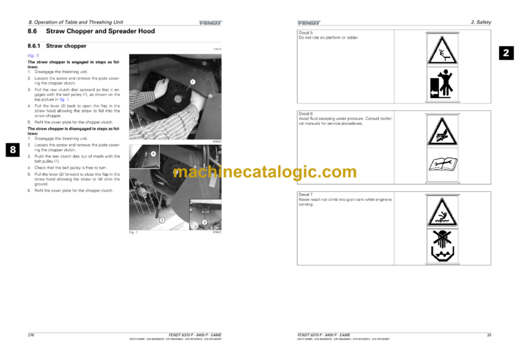 Fendt 8370P, 8370P AL, 8400P, 8400P AL Harvesting Operator’s Manual (D3151100M5)