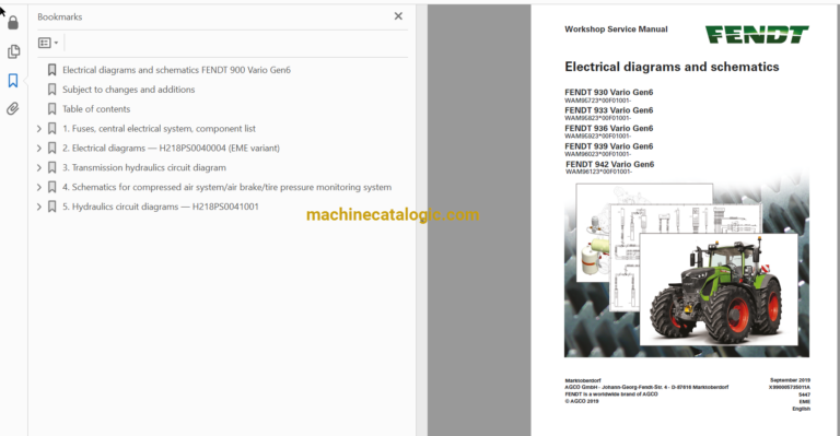 Fendt 900, 930, 933, 936, 939, 942 Vario Gen6 Tf4 Tractor Index: