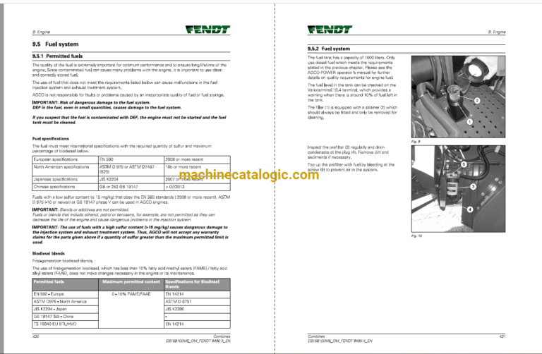 Fendt Ideal Series Combine 7, 7PL, 7T, 8, 8PL, 8T, 9, 9PL, 9T Harvesting Operator’s Manual