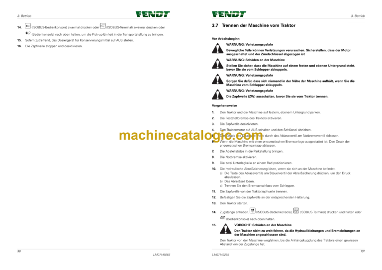 Fendt Tigo 40 MS, 40 MS D, 50 MS, 50 MS D, 60 MS, 70 MS Betriebsanleitung (Deutsch)