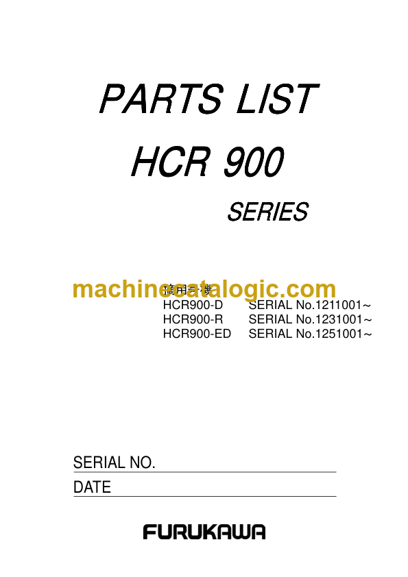 Furukawa HCR900D, HCR900R, HCR900ED Drill Rig Parts Manual