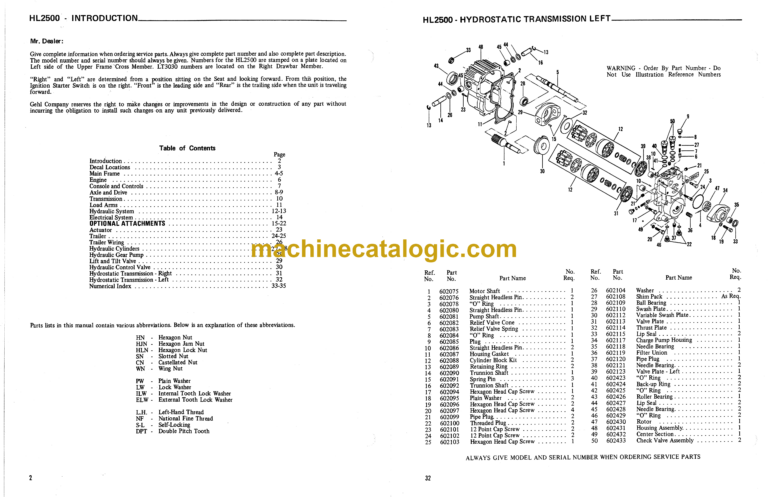 Gehl HL2500 Skid Loader Service Parts Manual (901213)