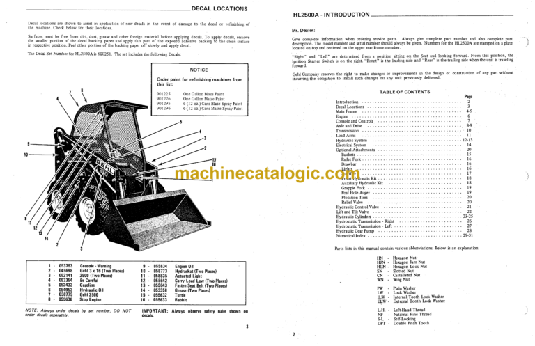Gehl HL2500A Skid Loader Service Parts Manual (901572)