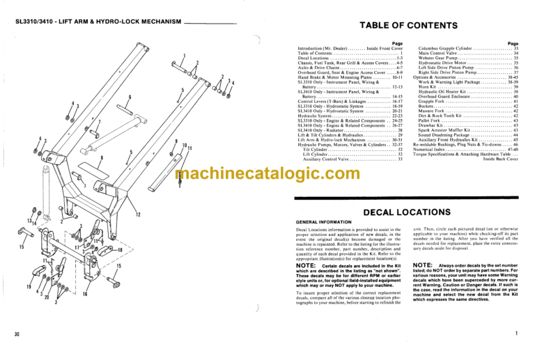Gehl SL3310, SL3410 Skid Loader Index:
