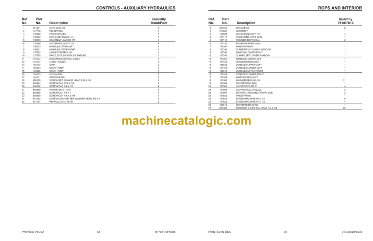 Cab – Side Window Kit 808403 . . . . . . . . . . . . . . . . . . . . . . . . . . . . . . . . . . . . 168